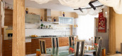 Квартира полностью меблирована и оснащена всей необходимой техникой. На первом уровне — жилая зона, на втором — кабинет, спортивный уголок и оборудованная сауна с санузлом.